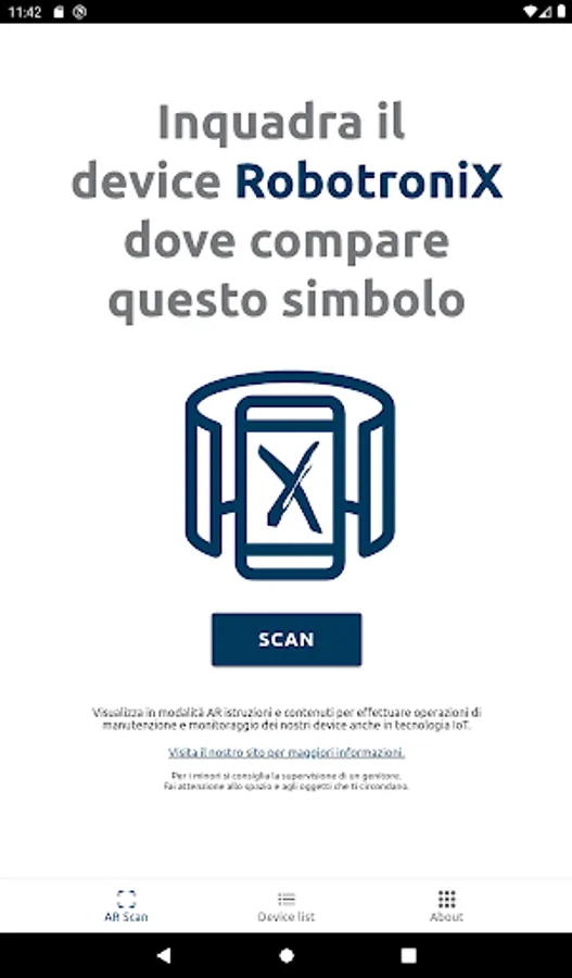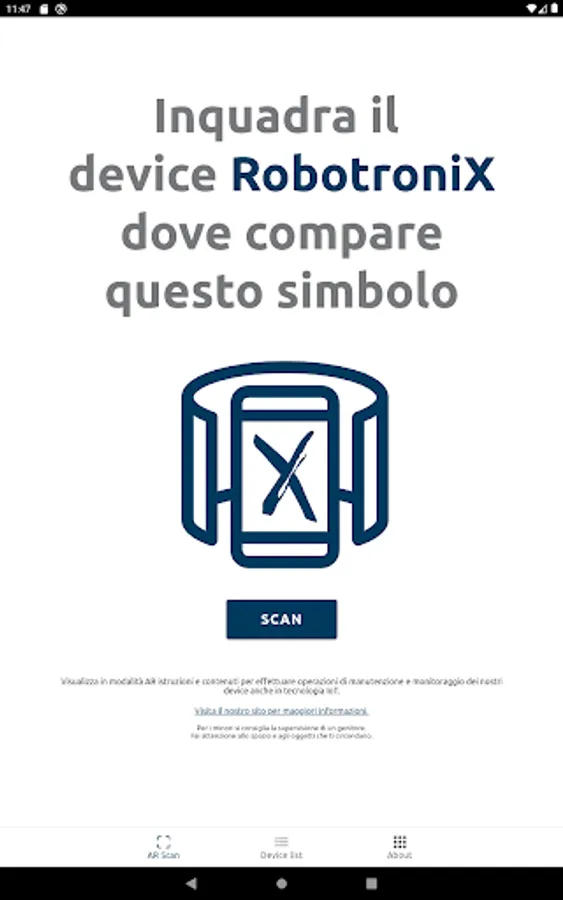 The App allows you to receive instructions for monitoring and repairing the industrial devices produced by RobotroniX, without having to call customer care, reducing assistance costs, increasing production efficiency, solving technical problems without the need for on-site interventions, carrying out repairs at a distance.