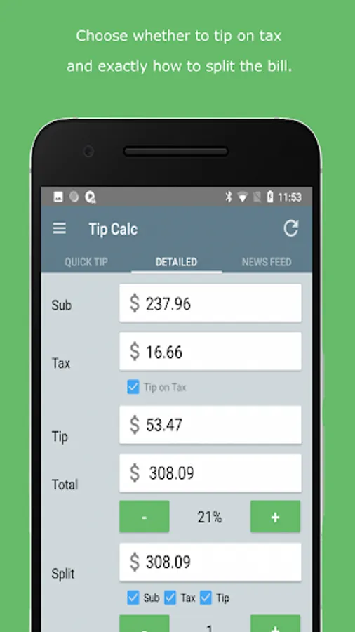 decide whether to tip on tax and exactly how to split the bill. Even Detail Tip mode is