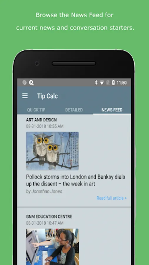 Do you visit restaurants? Calculate the tip and split the restaurant bill in seconds then browse current news articles. Tipping is considered a common courtesy by many people and it’s done every day. Why not make it easy? Calculating the tip and the split on your phones default calculator, or in your head, can be a bit more complicated than it seems; especially when you are detail-oriented or dining with a detail-oriented group. Also, do you want to start a conversation about current US or World News but don't want to look like you're browsing a news app? Don’t worry. Tip Calc, by Errol Apps, has you covered with quick and accurate tipping and splitting, bill split reminder texts, and a built in News Feed!