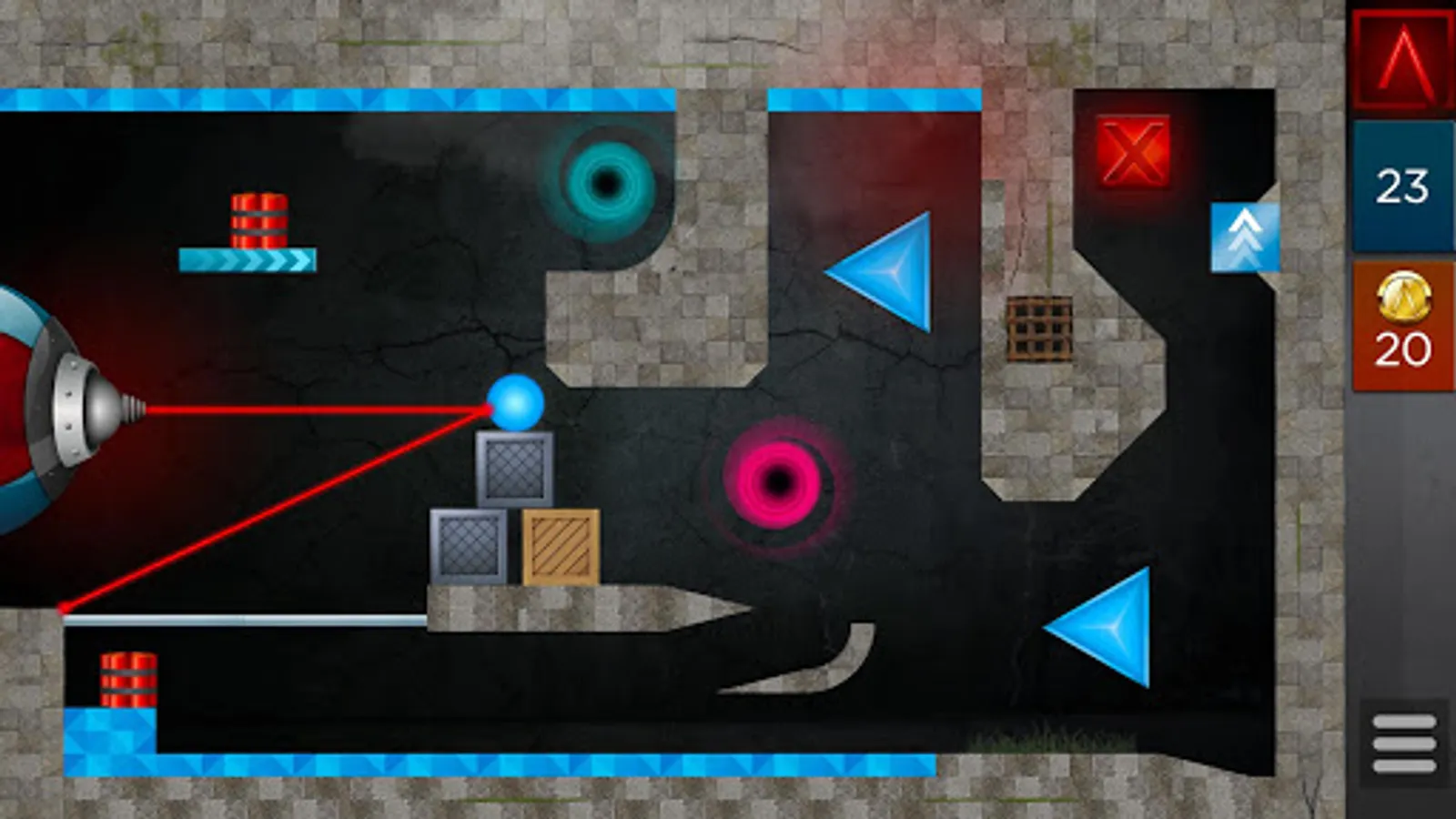 Use the many awesome objects including TNT, balls, portals, elevators, magnets and more to direct your laser beam at the target. Smash, burn and blast your way to victory. The possibilities are endless!