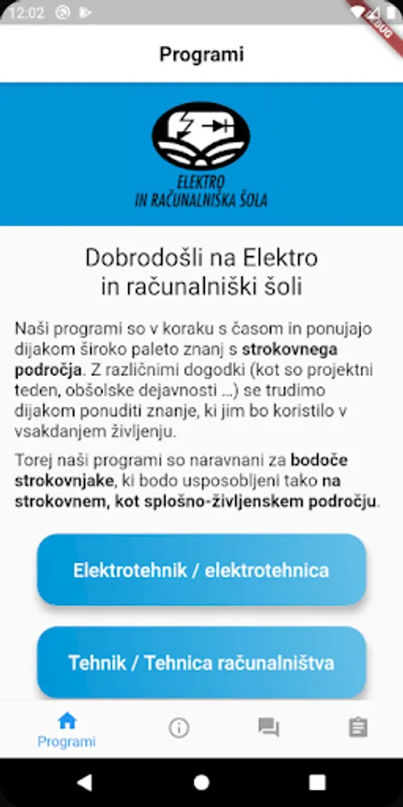The ERŠ Info application is intended for elementary school students and their parents, as the application collects information that is important for enrollment in the Electrical and Computer School Velenje.