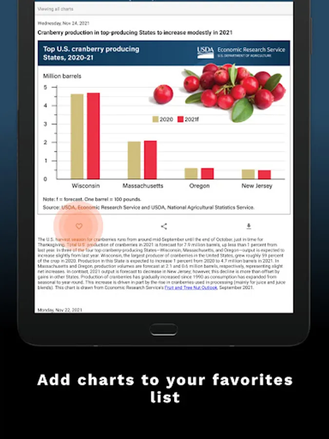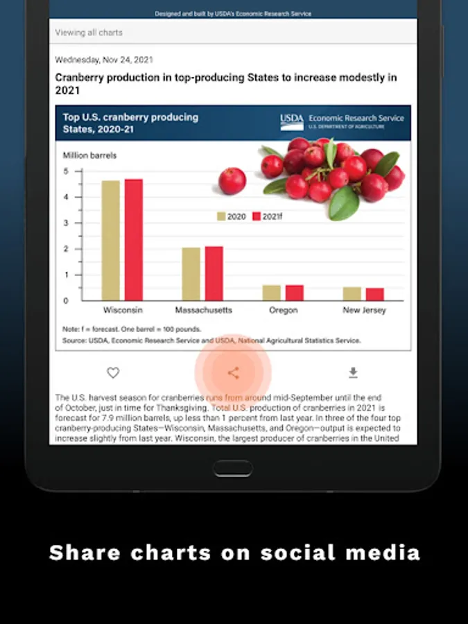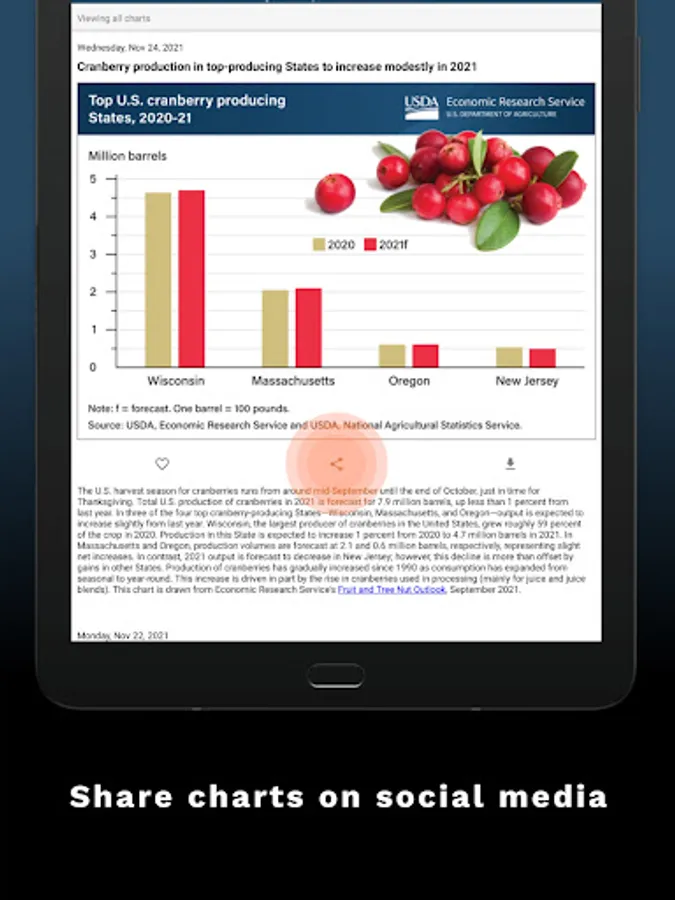 The popular Charts of Note are published on the ERS website and sent to subscribers via email. At the end of the year, users can look forward to our Editors’ Picks of the Best of Charts of Note.