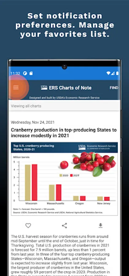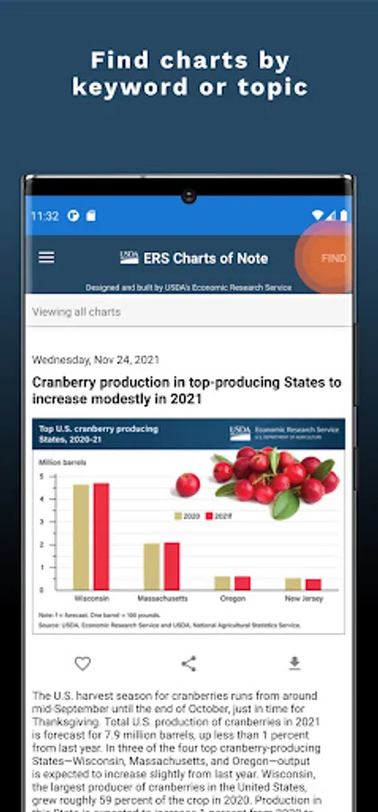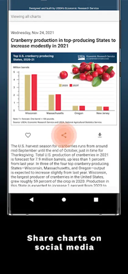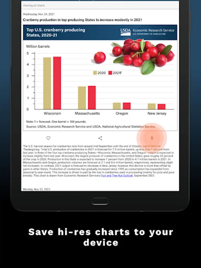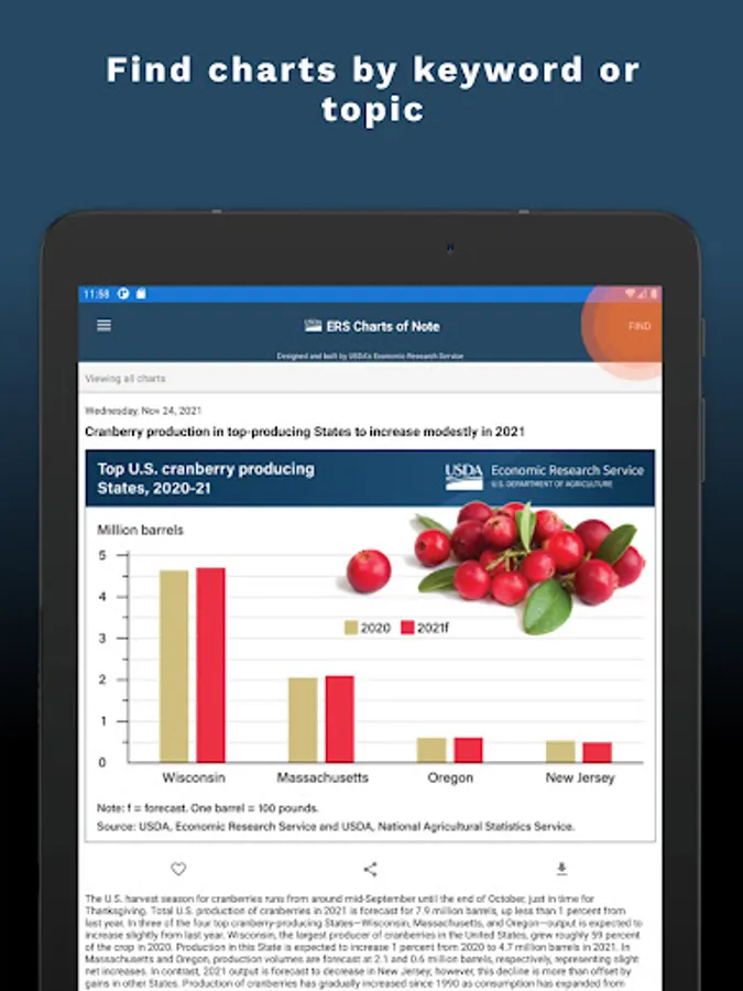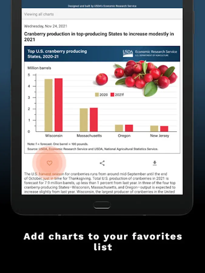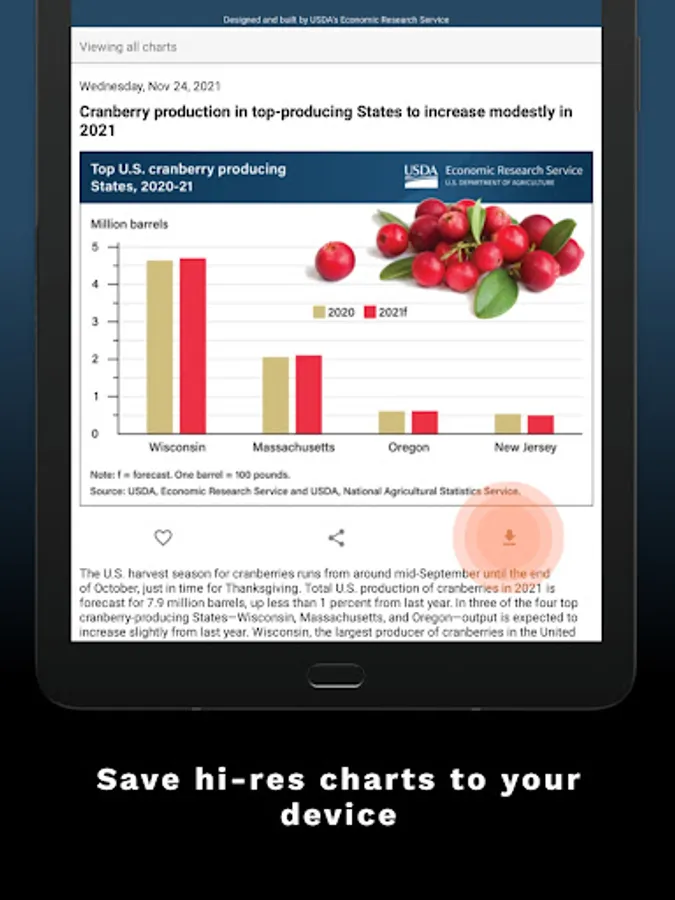 ERS Charts of Note present highlights from ERS research and analysis on key food and agriculture topics in a simple, user-friendly format. Get the latest Chart of Note; explore the range of timely, topical information; follow the links for more details; save and share items of interest; or search the extensive library of charts.