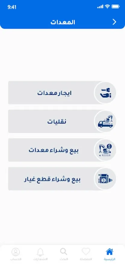 Irsaa is the first application that provides equipment service “renting, selling, buying, transferring and spare parts” electronically starting from the request through the approval of the price offers submitted to you, which will include all types of equipment, models and specifications in your country and allows you to compare between them, and you can follow the implementation of this service through Maps until they reach you, without showing your personal data to the providers of this service.