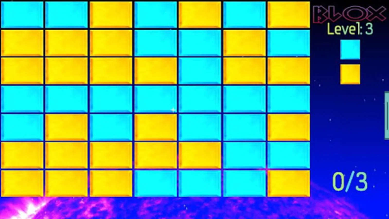 Blox is a puzzle game with an atmosphere that relaxes the player in no hurry. in the game you will have to make the whole table one color. the degree of difficulty increases linearly, good luck