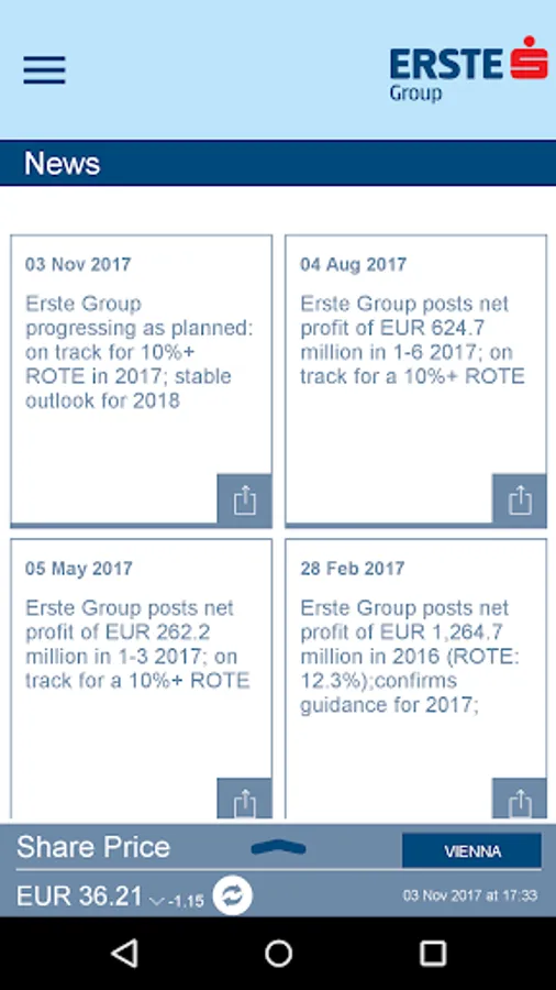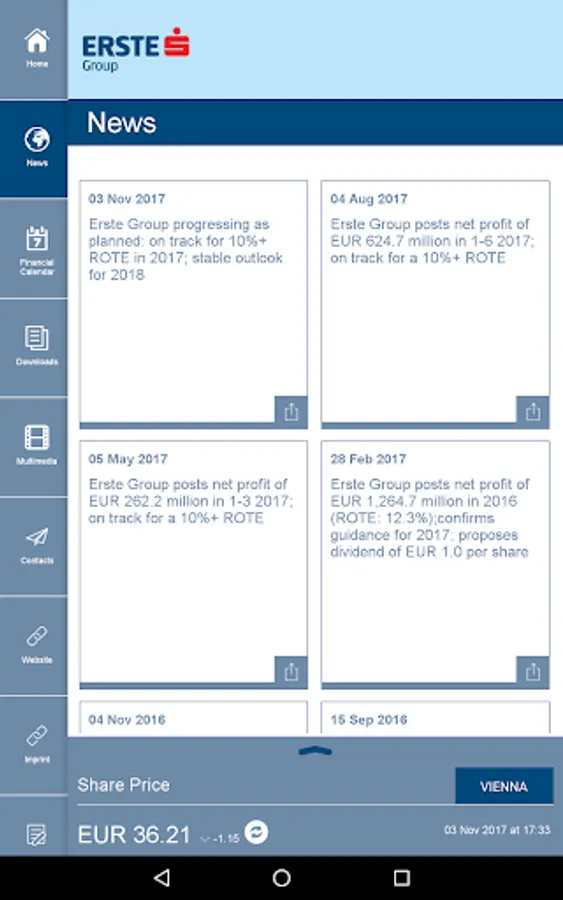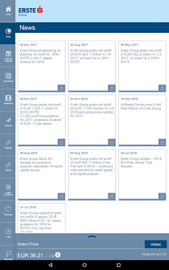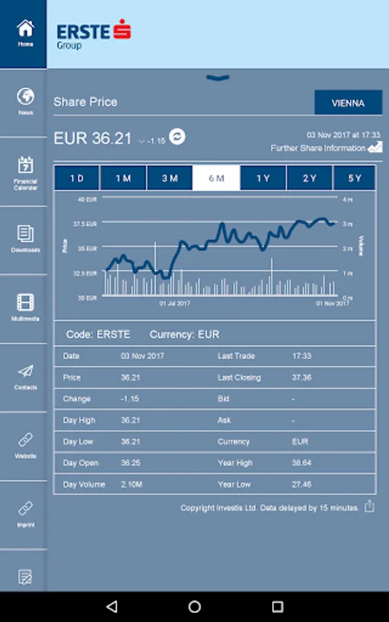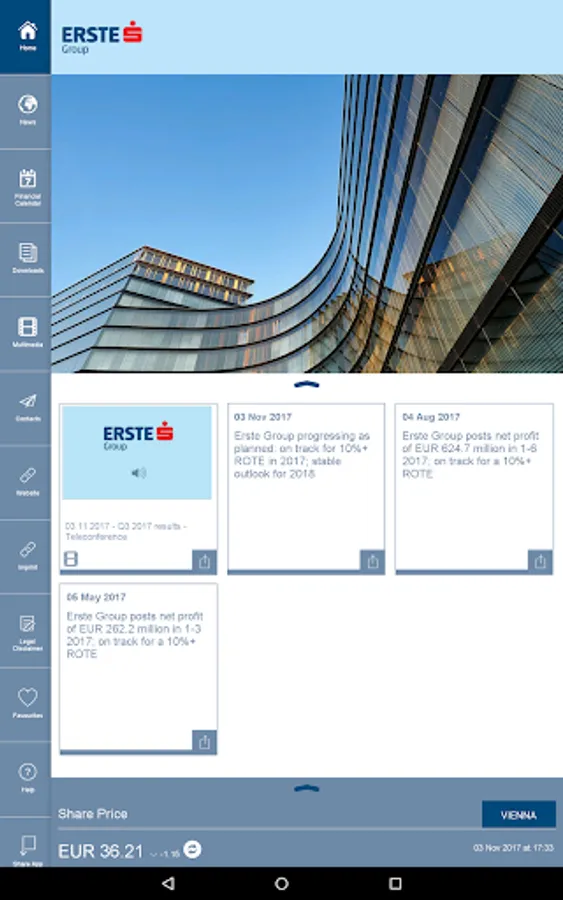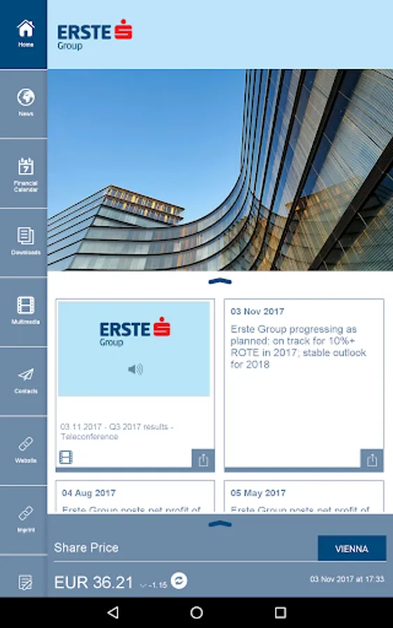 The app provides information for anyone interested in Erste Bank Group AG, but especially for investors and analysts.