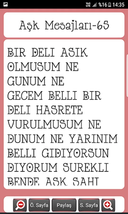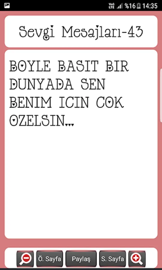 If you're looking impressive messages of love and longing for love, you miss your lover that you love to impress your partner have an application you want to show her how much you love will help you. The beautiful and impressive love love and longing hundreds of messages waiting for you as an instant message to our application. Whether you want the message via social media if you want or you can make out Bluethooth shares from other messaging program. Cool and cute design will love our app with beautiful fonts. Also, use within links Yasin property Ammer, Prayer Sure, the Koran-Kerim and religious programs such as Meal of Love ringtones, Mehter ringtones, religious ringtones as ringtone application of our, if you like Friday lamps feast messages, separation and longing messages, birthday as mothers and fathers day messages can be found in our other programs.