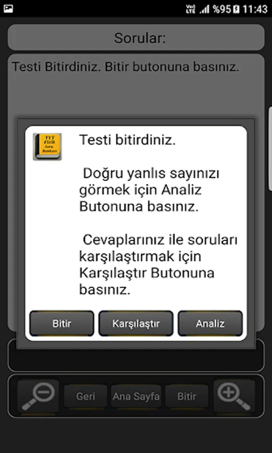 TYT AYT our application and if you are looking for Physics exam questions that will help you in a lot of work. With thousands of questions contained in the bank will not even need to take any questions. All AYT TYT and physics subjects are available free on hundreds of questions, when you have finished completing quests exam tests your right and you will learn how to clear your flaw. Analysis can also head to compare your answers with the correct answers in the test you are finished and you can see where you made mistakes. thick books available now with questions can stop moving. With our application for free at the café on the road Buses will transport thousands of questions with you and be able to solve. Thanks to links found within our application and YKS TYT Turkish, mathematics, chemistry, history, geography, biology and philosophy can be found in the question bank.