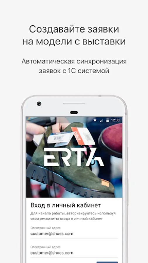 If you are having difficulty with your application, please write about it: mobile.android@erta-shoes.ru
