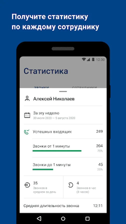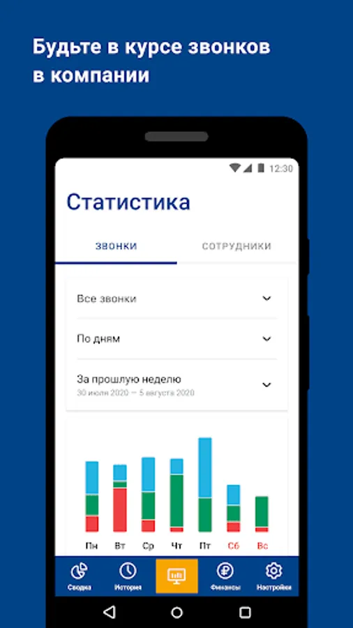 - receive a summary of the company's calls for the current day (in order to understand how many calls today were received, made or missed by employees),