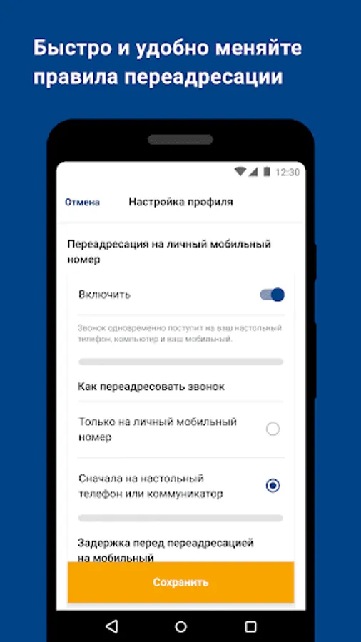 - set up call forwarding ー even faster than in the Cloud PBX web interface.