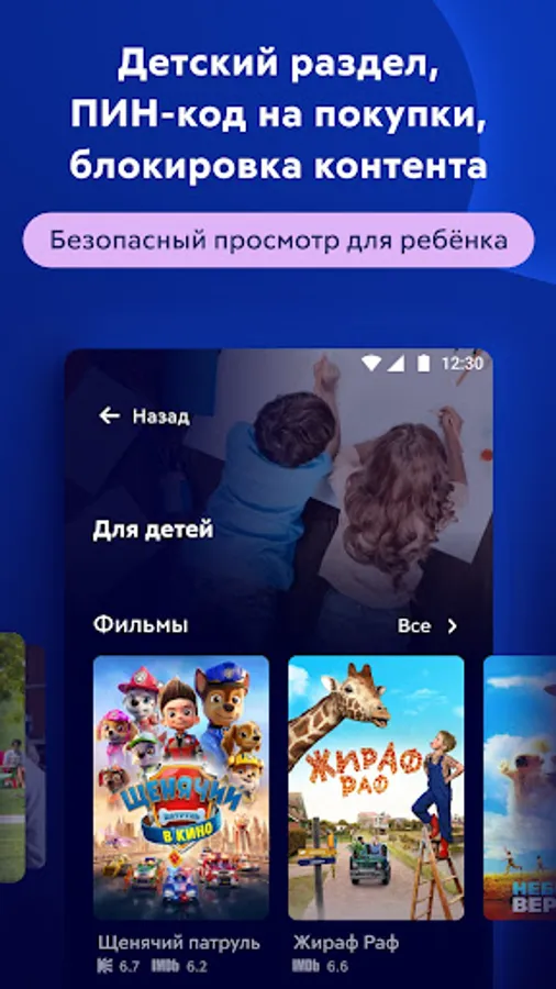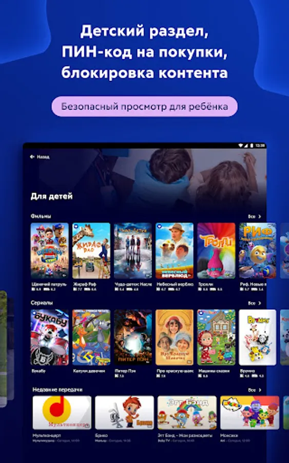 - Push notifications (information about discounts and promotions, news about interesting TV shows, new movies, cartoons and series).