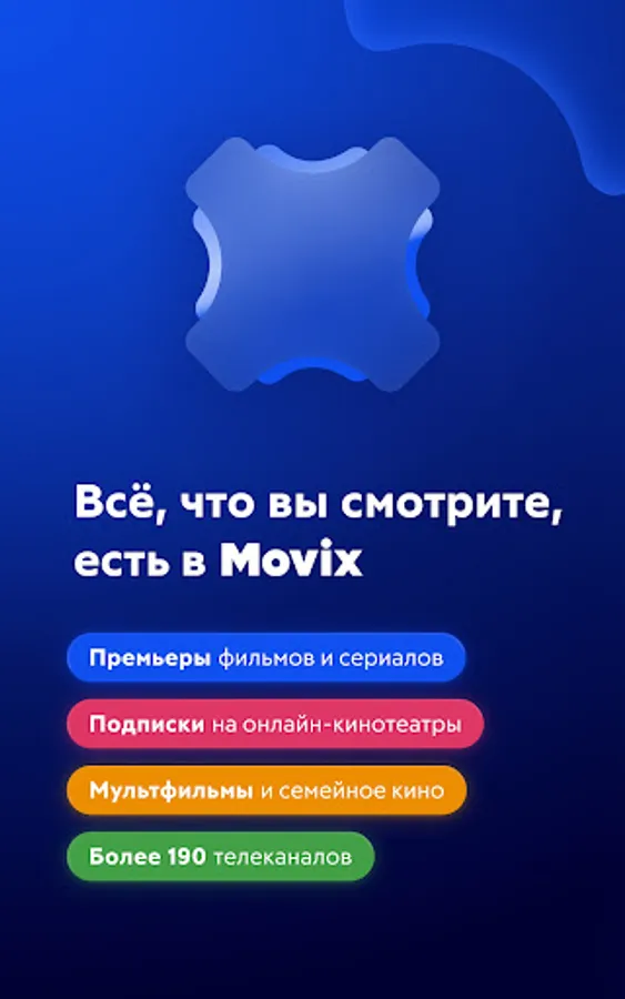 - Favorites (movies and series added from your phone, movix.ru site or TV set-top box Movix Dom.ru).