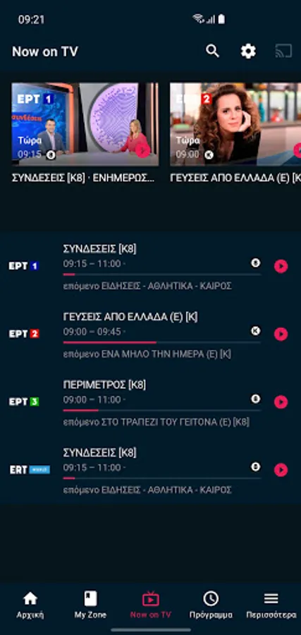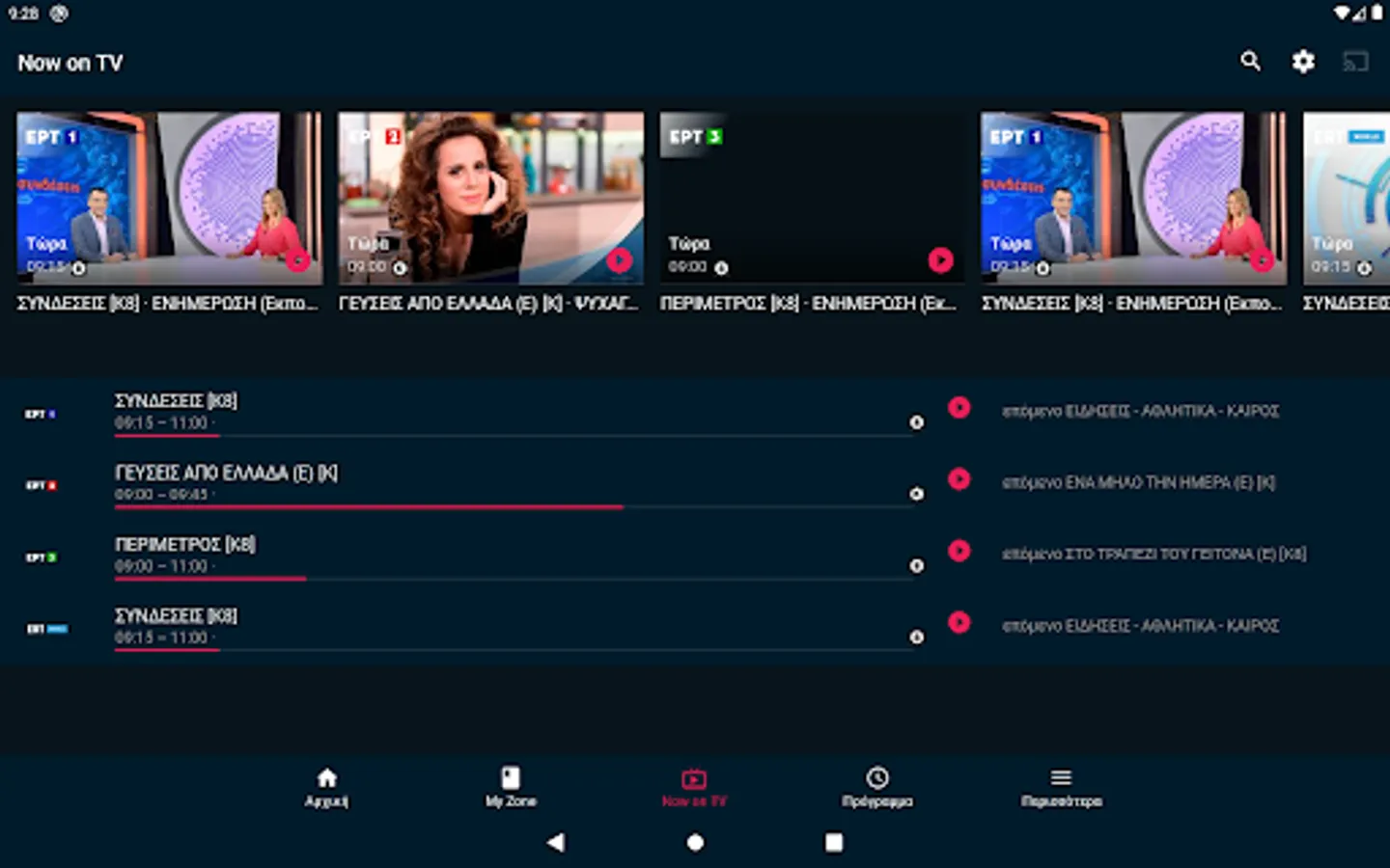 Entertainment, culture, sports, but also live broadcast of all ERT channels - everything plays on your screen through this application.