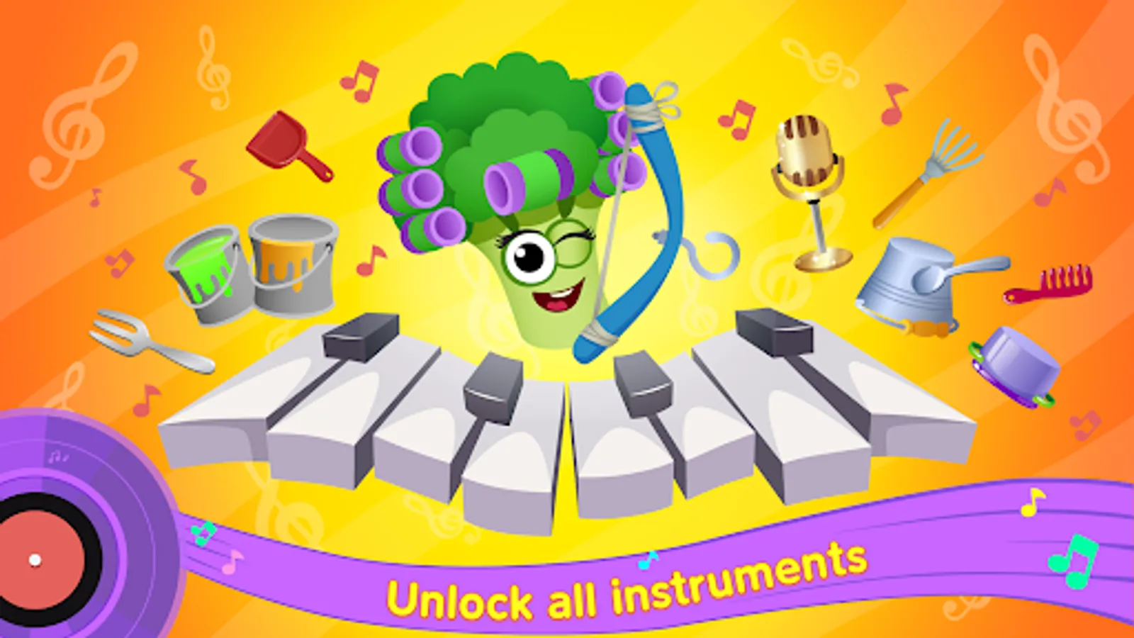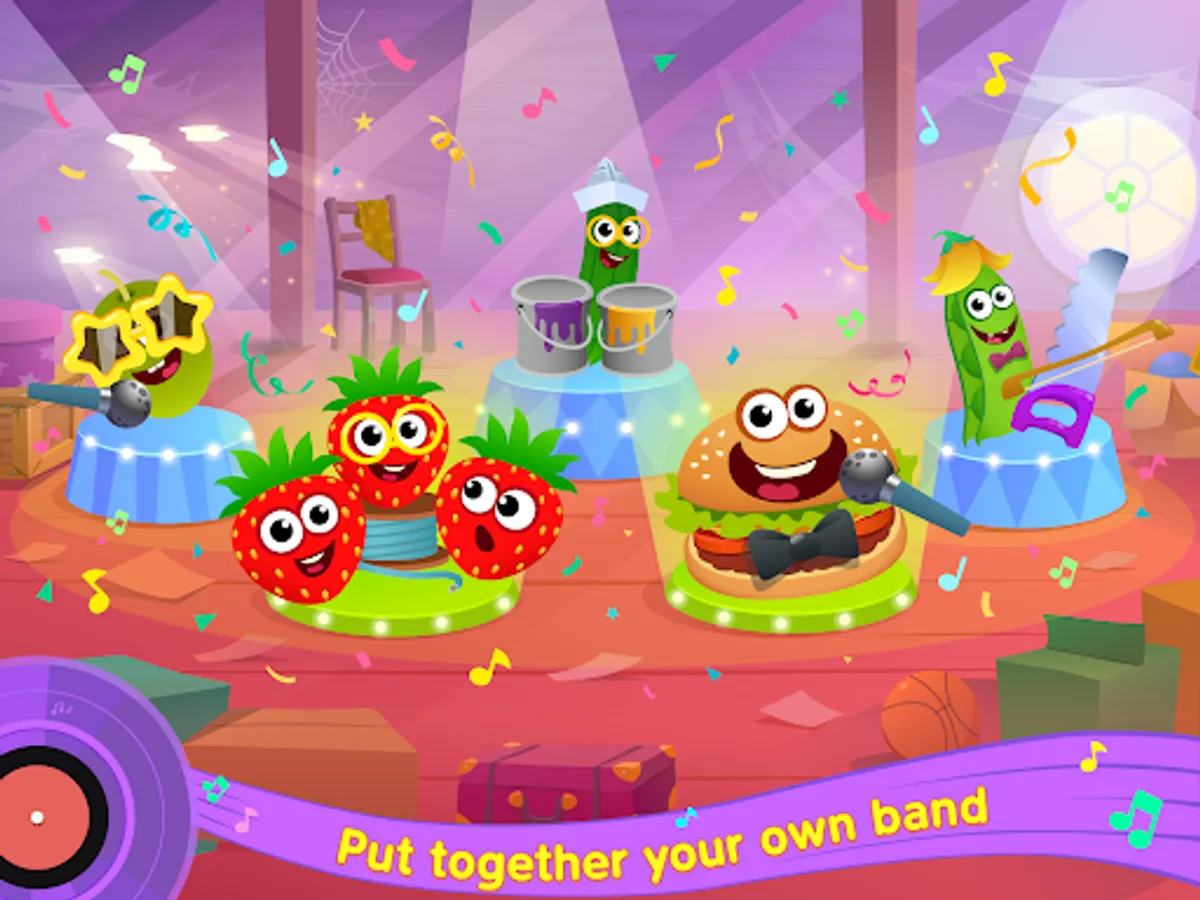 Rock on! And on, and on in these toddler music games and fun games for kids. Play more of the funny food activities and preschool games for free in the app to unlock more fruits, veggies, and instruments. Kids piano games like these let you get as many funky musicians as possible and put together the grandest concert anyone's ever seen! ⚡