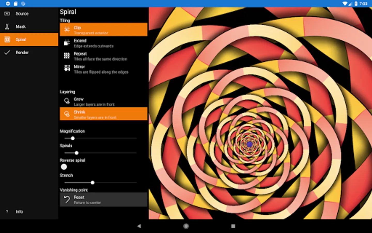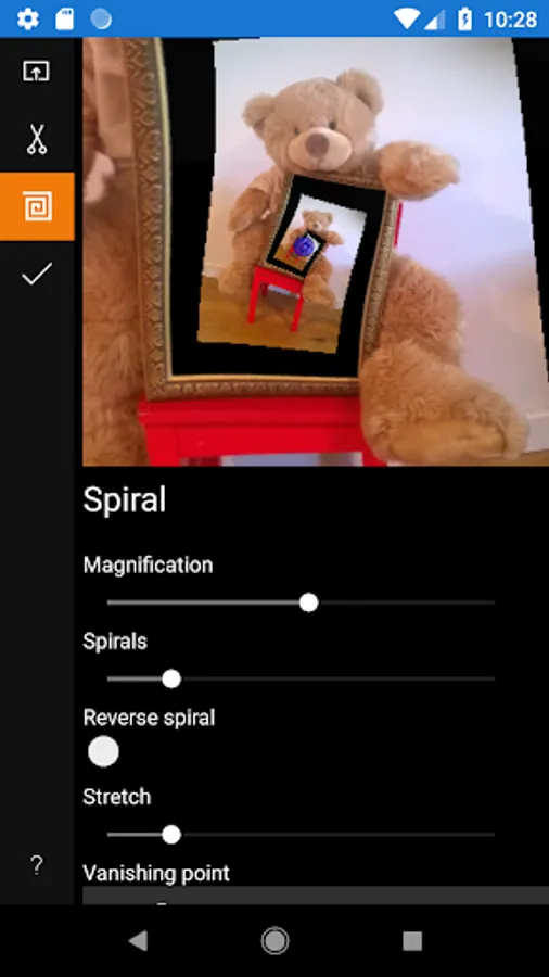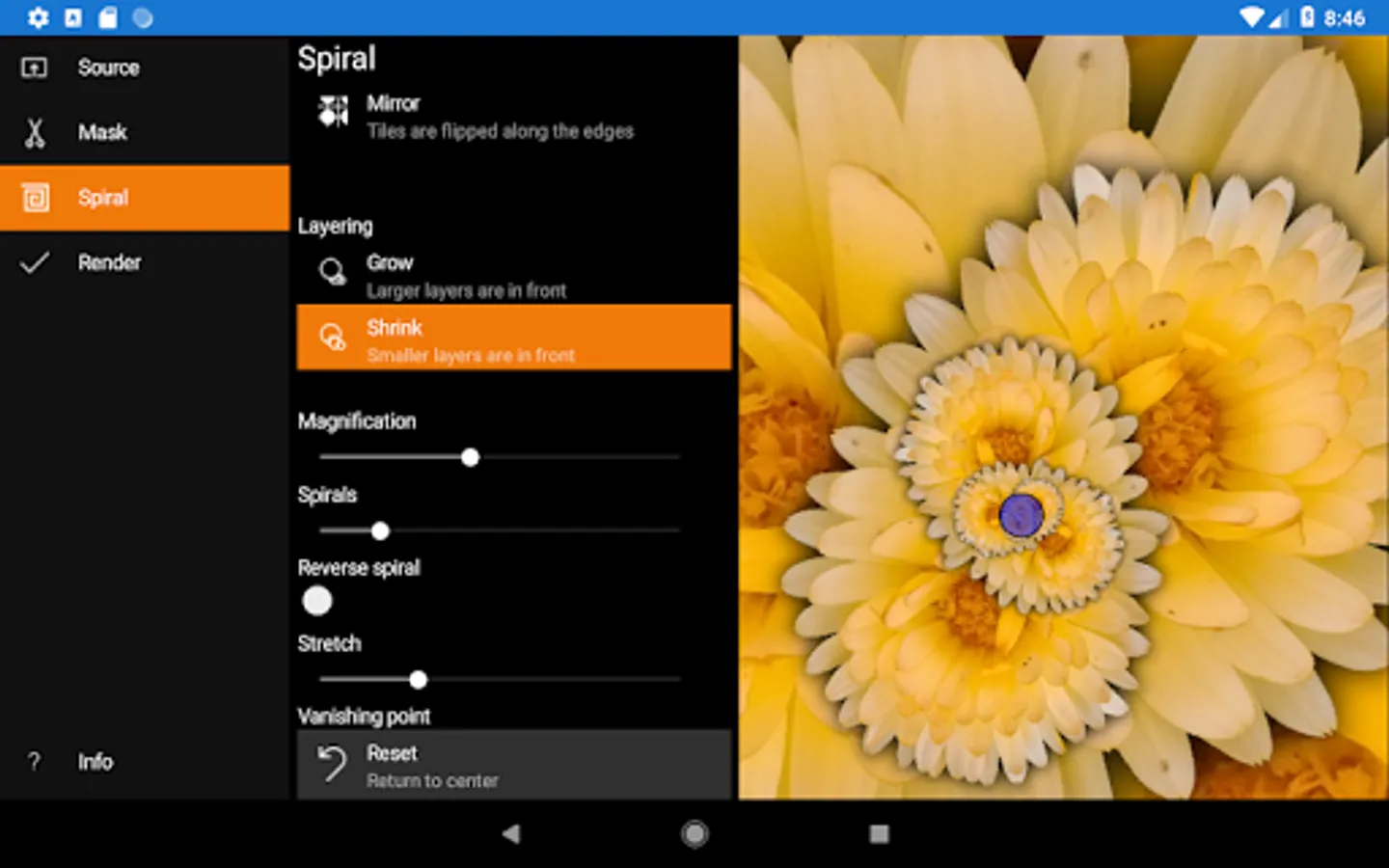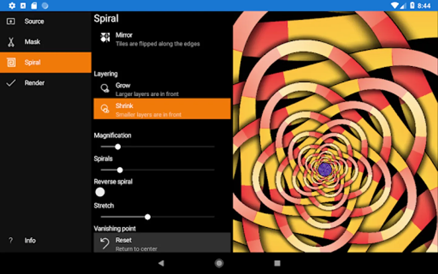 Transform your pictures into Escher-like works of art! Apply the Droste Effect to any picture with this easy to use app. Use images with transparent backgrounds, or apply your own mask inside the app. Interactively change the properties of the effect and instantly see the result!
