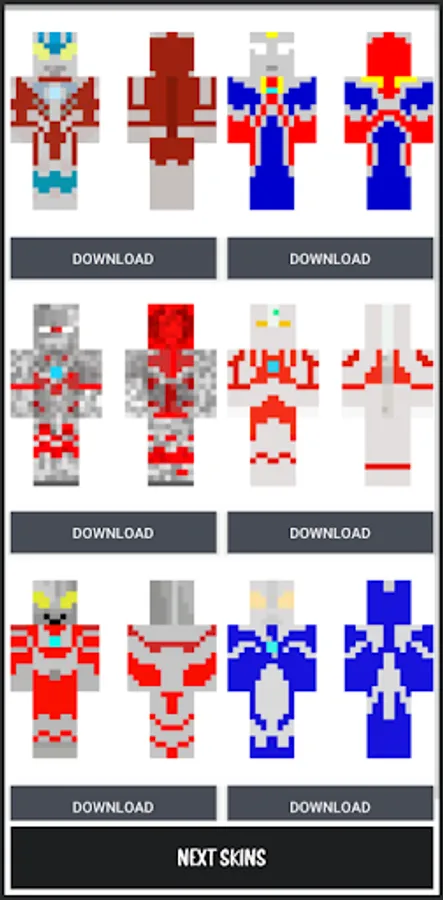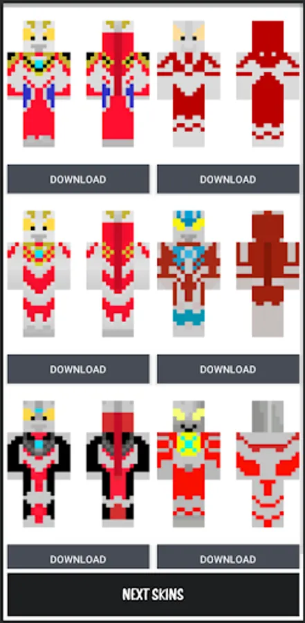 Get new Ultraman Skins for Minecraft for free and show how great you are at playing minecraft! Install your favorite Ultraman skin style and customizable skins with fun in Minecraft PE (MCPE) creative mode theme.