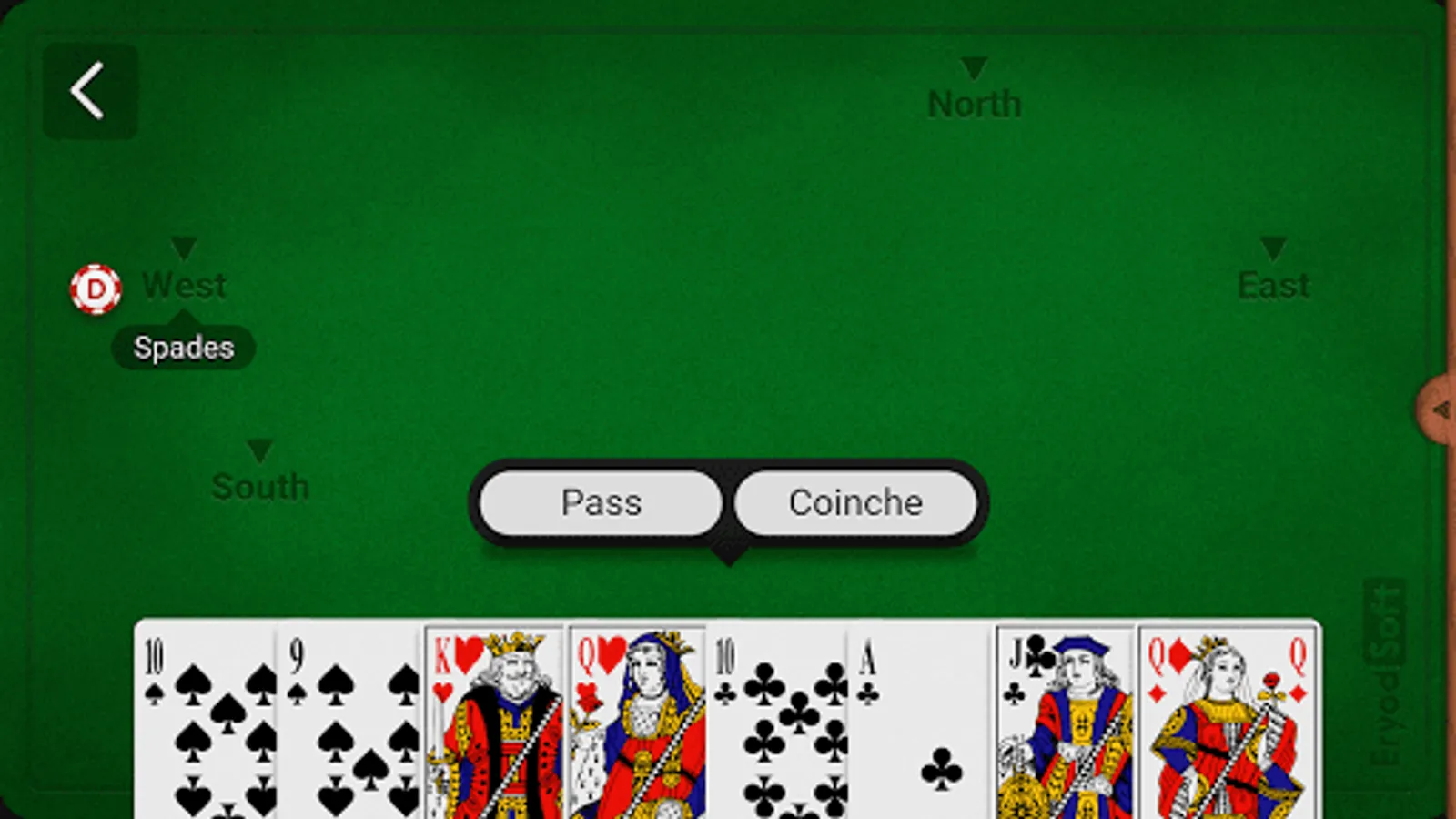 Your opponents and teammates are simulated by an high-level artificial intelligence, that knows the common strategies used in manille card game. Therefore the game is very realistic, close to game with real players, and the challenge is high.