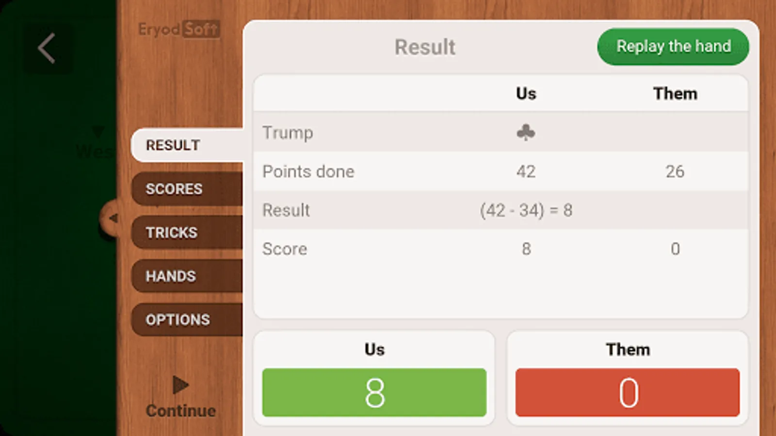 Finally, you can at the end of the round see all the tricks, and replay the round if you want, to train and try new strategies.