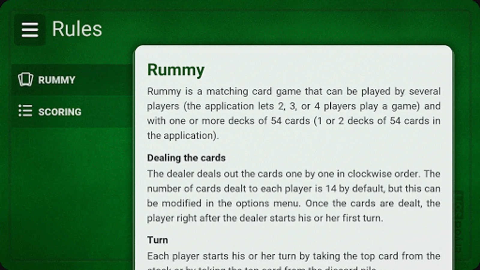 Many rummy variations are included in the application: