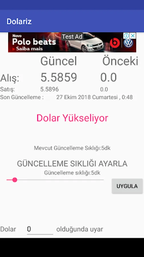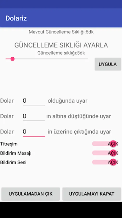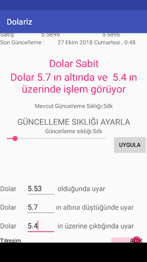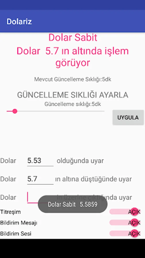 With this application you can follow the Dollar rate which is updated in the desired range and can be notified.