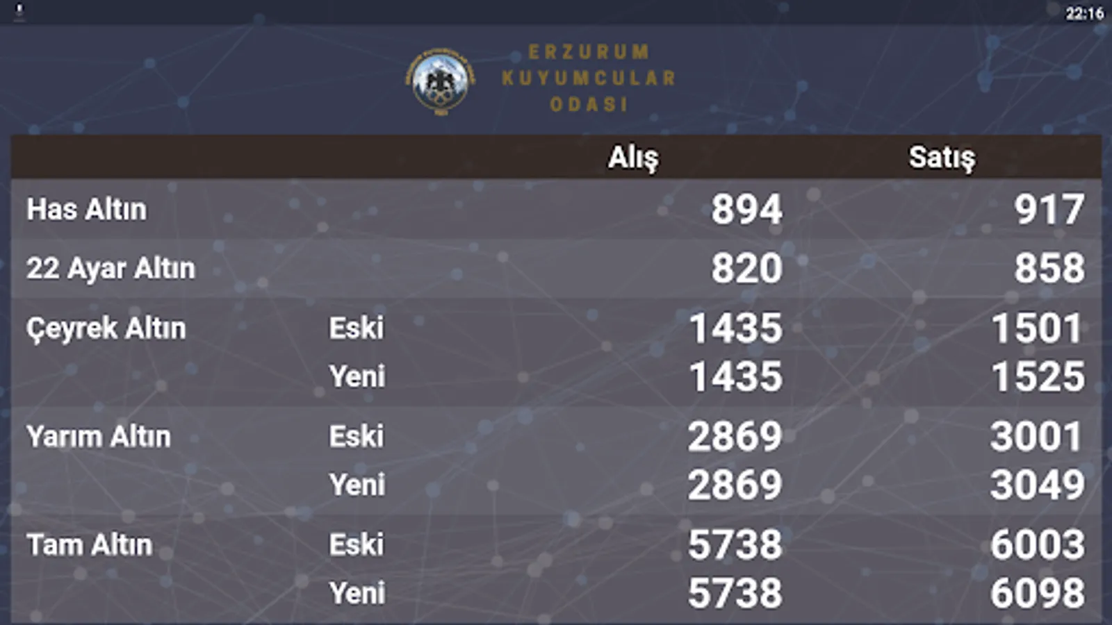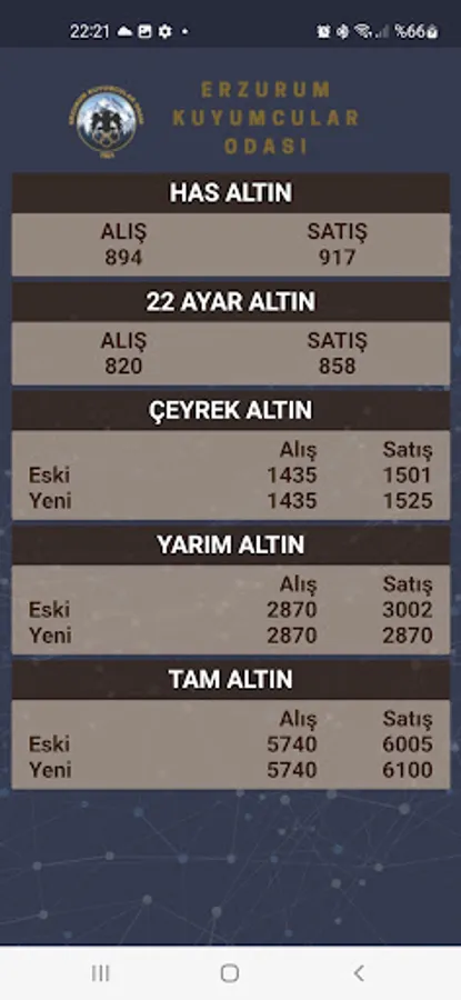 It is an informative application where you can view the gold buying and selling rates of the jewelers affiliated with Erzurum Chamber of Jewelers.