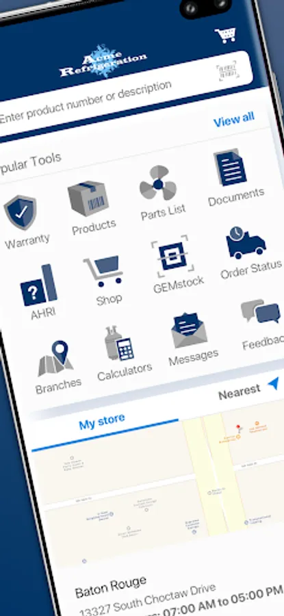 * link to your Acme Refrigeration account to view your pricing and order status data, as well as real-time product availability at your preferred branch and other nearby Acme Refrigeration branches