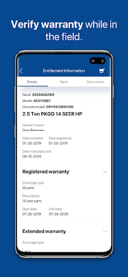 * Verify Limited Warranty Registrations while in the field (WARRANTY)