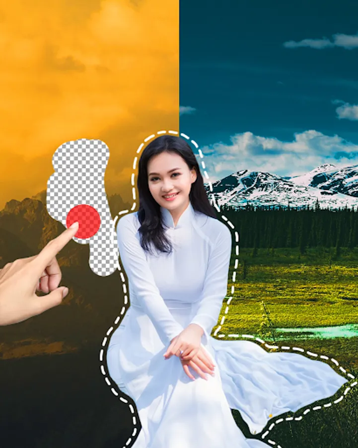Erase photo background to transparent and add different beautiful backgrounds, edit it with so many options like stickers, text font, text shadow, text color, duplicate your cut out and more. You can choose your photo from your gallery and set as new background.