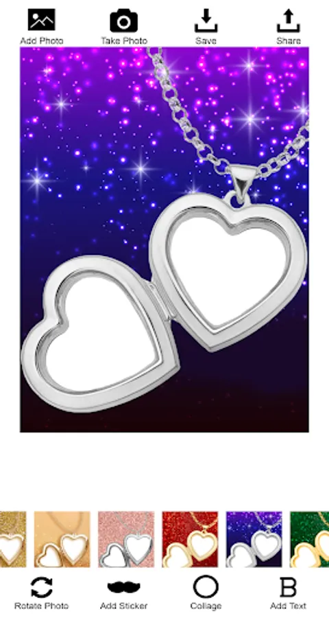 Your face and your dear face will show on couple locket, it awesome and beautiful. You can do it now with Locket Photo Frames for couple and for all free. You locker photo will show on beautiful and high resolution background with hears, roses, flowers and more and more romantic backgrounds are waiting you now. Addition, you can impress your dear with wonderful photos on locket and more.