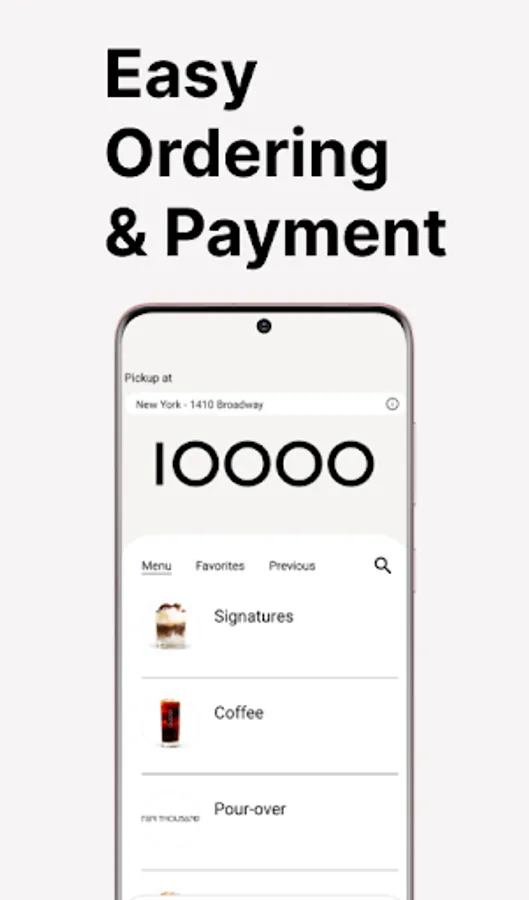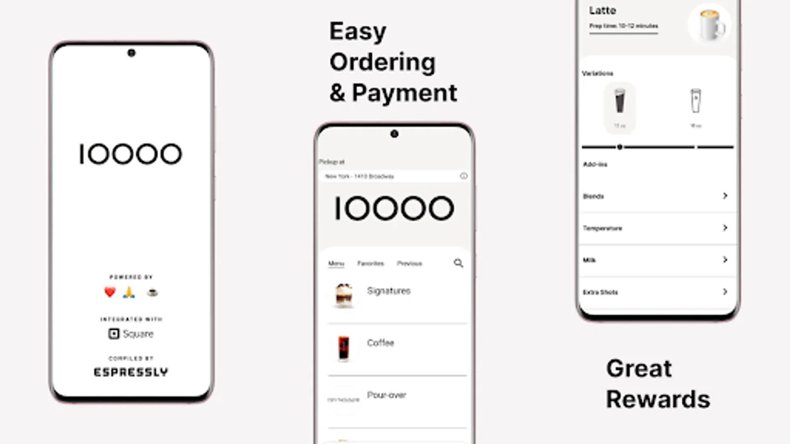 The 10,000 Coffee app allows customers to easily order ahead and receive great rewards.