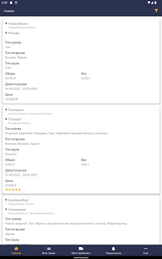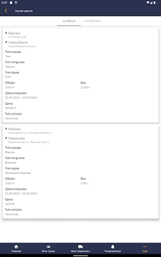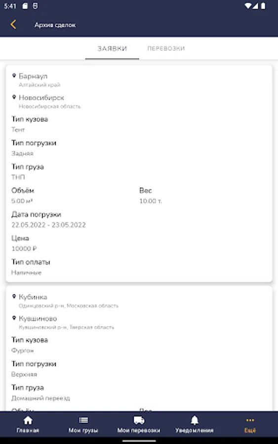 Cargopolis is a tool for professionals. The users of the service are exclusively dispatchers-logistics and carriers. Here you will find thousands of goods and carriers ready to take them away. The service makes it possible to place downloads both at a fixed rate and in an auction format, which helps the customer save on transportation, and the carrier gains a competitive advantage. Our service is presented both in the Web version, which is undoubtedly convenient when working in the office, and on the most popular mobile platforms, providing portability of the workplace and allowing you to solve transport problems from anywhere. Cargopolis will help you easily find a cargo or a carrier and immediately draw up an agreement - an application, and in the transaction archive you will always quickly find and print the necessary document.