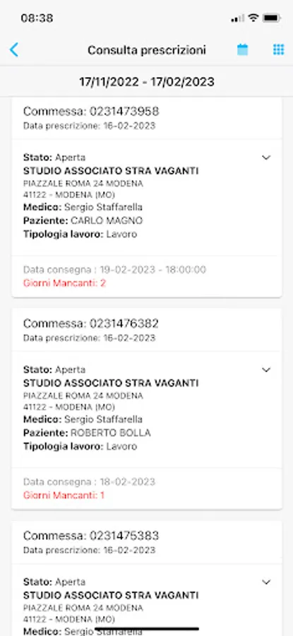 In the laboratory's OdontoSoft management system, the prescription entered from the APP or from the portal, together with all the files entered by the Doctor, will be acquired automatically, ensuring significant time savings in internal procedures. At the end of the process, the certifications produced will be made available to the customer who can easily download them via the APP or via the relevant odontoconnect portal. All orders can be filtered by customer, doctor, period and progress status.
