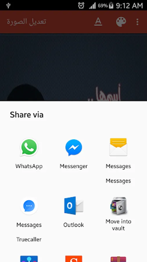 الكتابة على الصور و مشاركتها على مواقع أو برامج التواصل المشهورة ومن مميزات التطبيق الاتي: