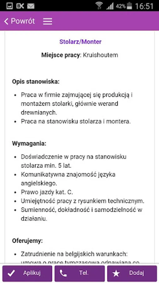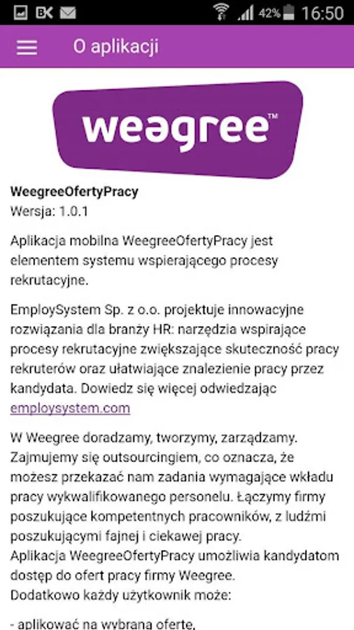 WeegreeOfertyPracy application allows applicants access to jobs Weegree company.