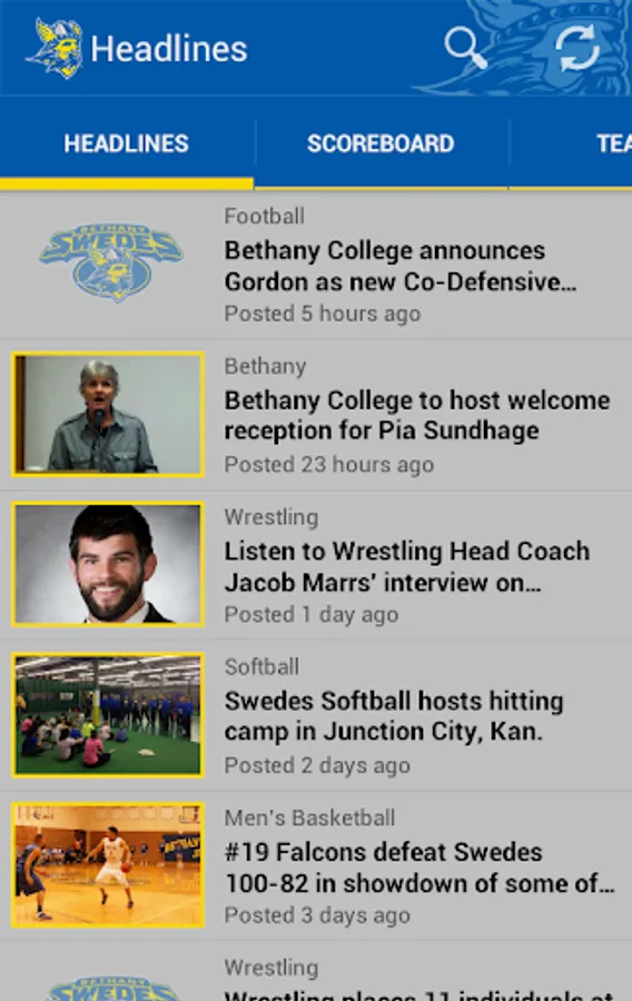 For the latest information about the Swedes, download the official app of Bethany College Athletics. The app brings you the most recent updates about the Swedes, including scores, game recaps, schedules, statistics, news headlines, and signings. In addition, connect to live video, live audio, and live stats of selected Bethany College contests. Always feel plugged in to the latest in Swedes Athletics with our one-touch access to Facebook and Twitter. The official Bethany College Athletics app is your source for easy, inside access to the Swedes!