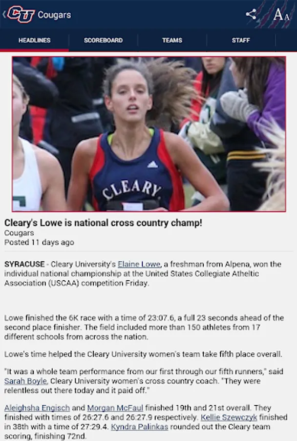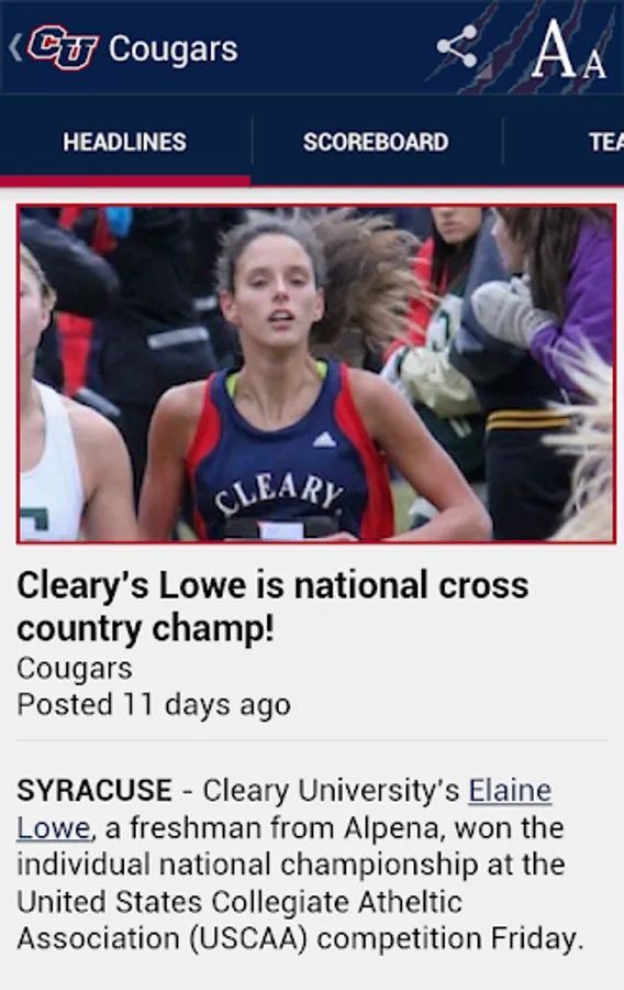 Your ticket to Cleary University (Michigan) athletics. The Cougars compete in baseball, softball, men's soccer, women's soccer, men's golf, women's golf, men's cross country and women's cross country. Get scores, stats, news, features and more related to Cleary University athletics.