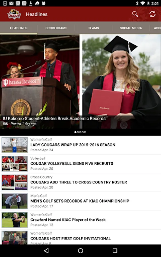 The official App of the Cougars from the Indiana University Kokomo Office of Athletics! Get all the latest scores, news, and feature content from your favorite team.