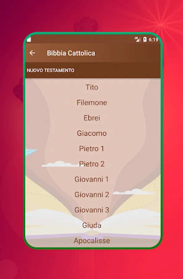 The Sacra Bibbia cattolica ora più giovane e modern, in questa new opzione biblica troverai the Bibbia cattolica complete with i suoi 73 libri dell'Antico Testamento e del Nuovo Testamento, the Bibbia will work 100% on the internet