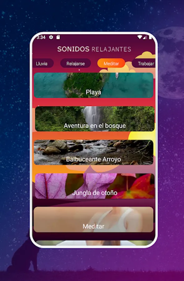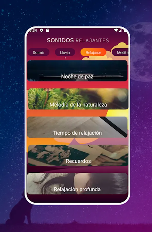Relaxing sounds, it is time to rest and relax your mind, forget your worries, with our application you can even sleep when listening to sounds selected for you.