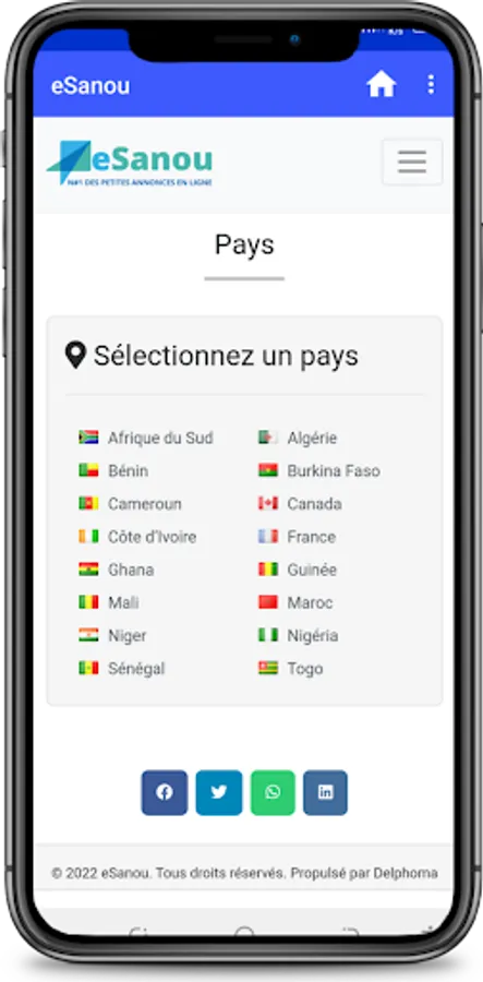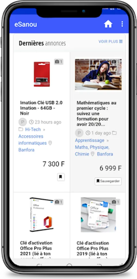 eSanou is the largest collection of free classified ads where you can buy, sell, rent and discover used electronics, furniture, cars, movies, books, fashion, real estate, services, job offers , events, and more. On eSanou, you can buy and sell new and used products near you.