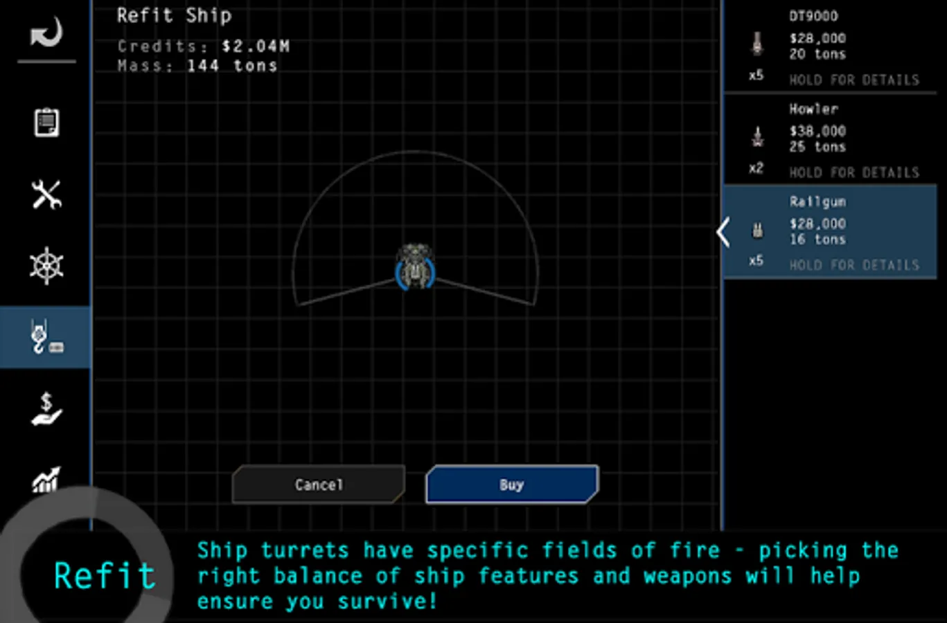 - Visible weapons and constraint turret arcs, for a more in-depth outfitting experience and more tactical gameplay!