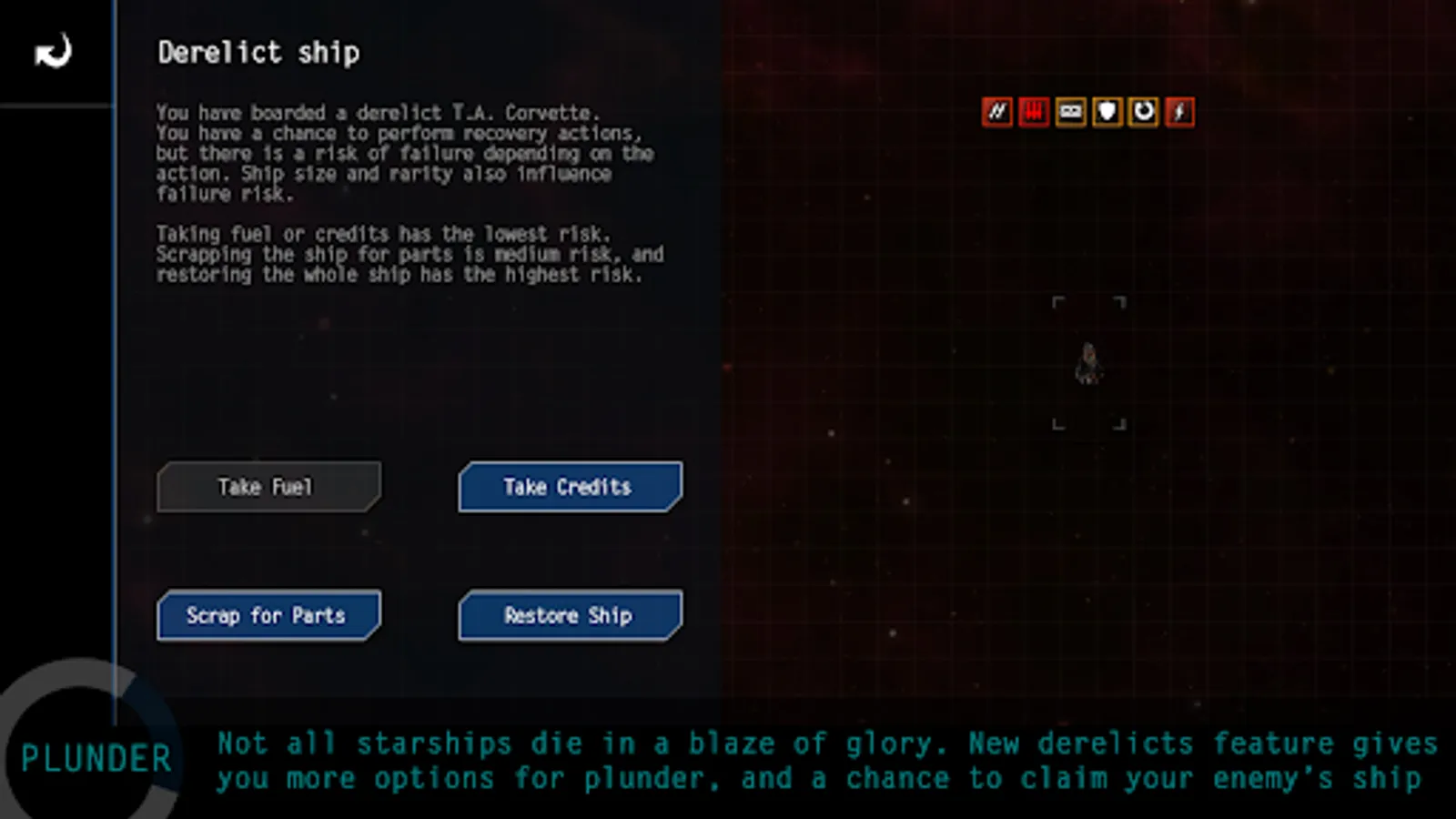 - Derelict ships you can board and attempt to bring back to life, or scrap for parts...