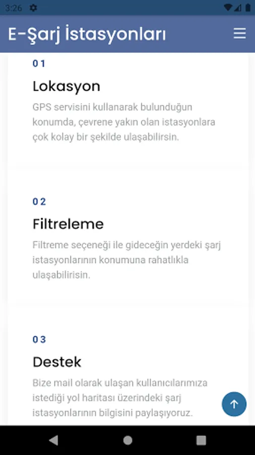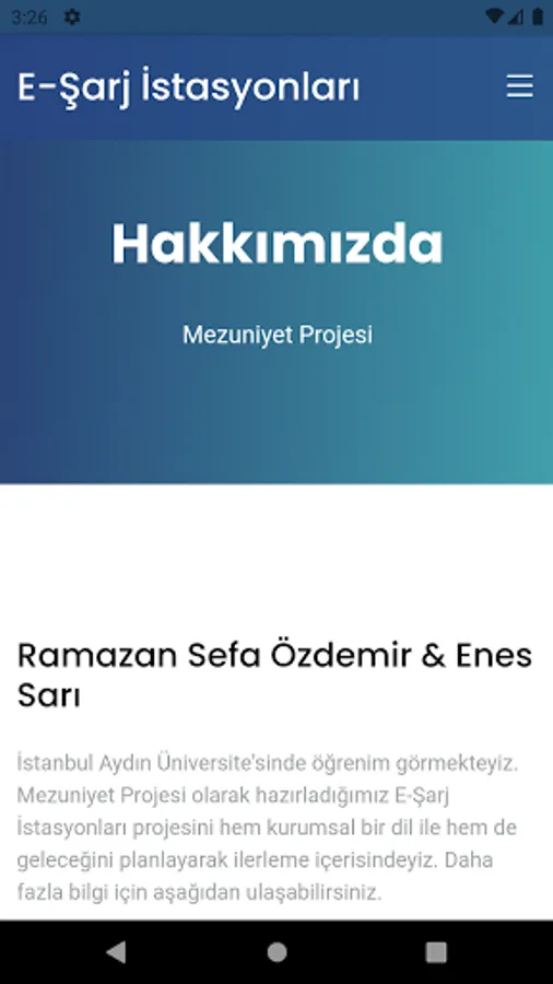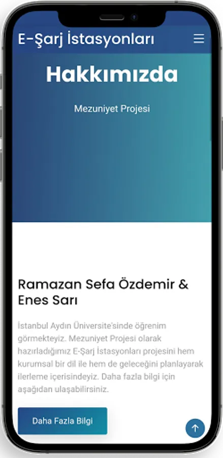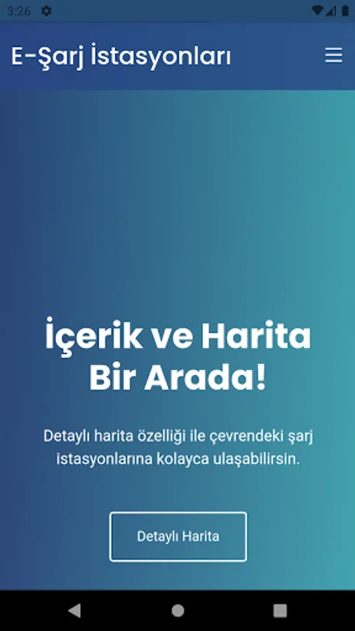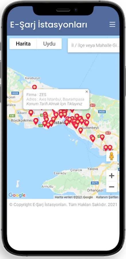As a result of the spread of electric vehicles in our country and the world and the increase in the use of electric vehicles, fuel stations will now be replaced by charging stations of electric vehicles. As we discover that such a project does not exist in the developing technology, why shouldn't we? We decided to implement this project, where we had the opportunity to improve ourselves in software languages that are widely used today. Our aim is to show people the charging station live on the map, regardless of the closest company where they are located, and to be able to take a route to that station. Thanks to the infrastructure we have created based on the data we have obtained as a result of our research, we aimed to make it accessible to users both from smart phones and the internet, as well as to collect the data we request from the charging station companies in one place, and to show the users the newest and closest station by keeping this data up-to-date.