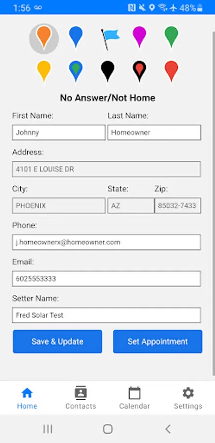 Drop different colored pins on a map to mark where you've been and the outcome of each door knocked. It is bi-directionally linked to your account with our CRM and stores contact information, notes, and appointments for the user's convenience. This connection unlocks the powerful automation and messaging tools available with our CRM. When combining the ability to drop different colored pins on a map, users can easily see where they have been and quickly identify areas that require further attention and convert prospects to a happy customer.