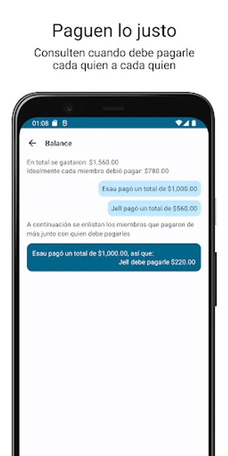 View balances and statistics: The application provides detailed information on shared expenses, balances and statistics so that users can see how much they owe and how much they should receive from their friends. This helps avoid misunderstandings and maintain fair management of shared costs.