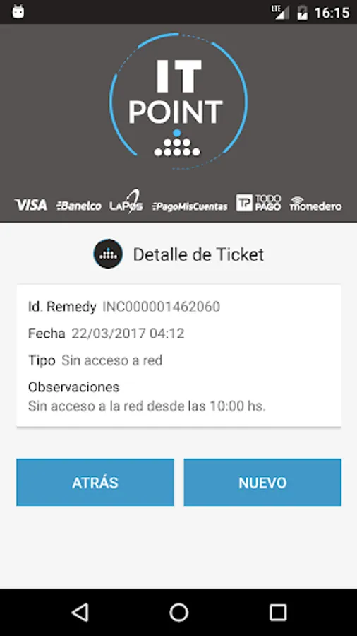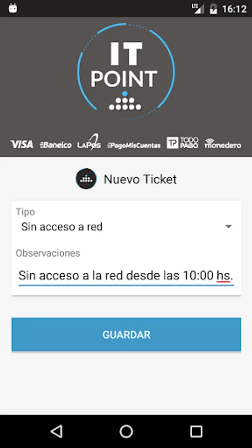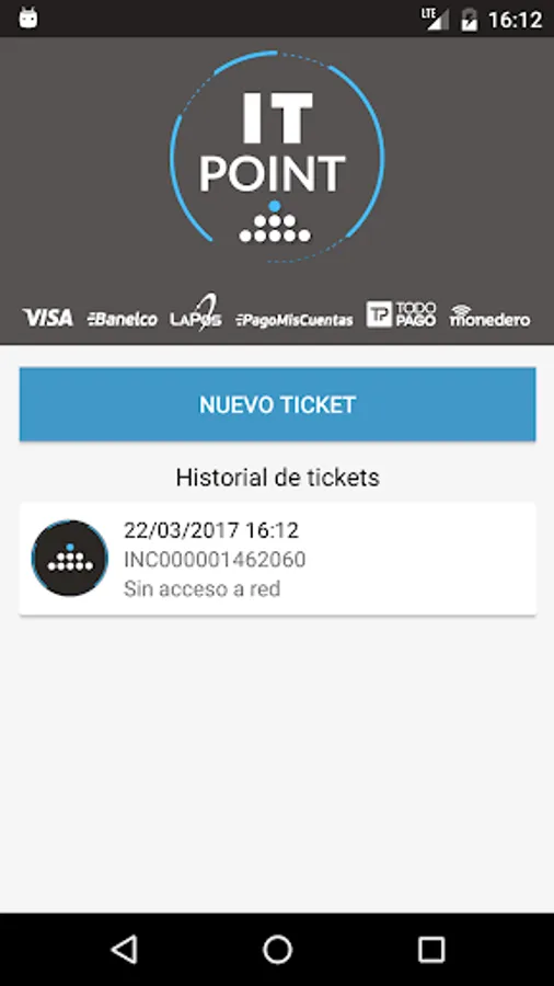 ItPoint is the application for employees of Prisma Payment Systems that allows you to register support tickets from your mobile device.