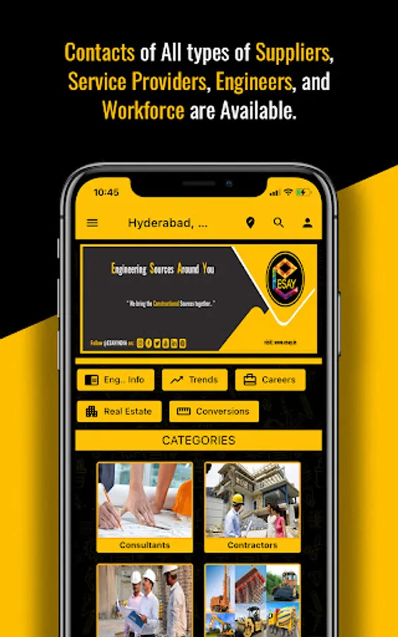 ESAY stands for “Engineering Sources Around You” provides a perfect portal for everyone who wants to get involved in the field of construction making their way very easy throughout. It is a place where you can have access to the contacts of all types of service providers, suppliers, engineers, and workforce along with the important information required for the people in the construction sector.