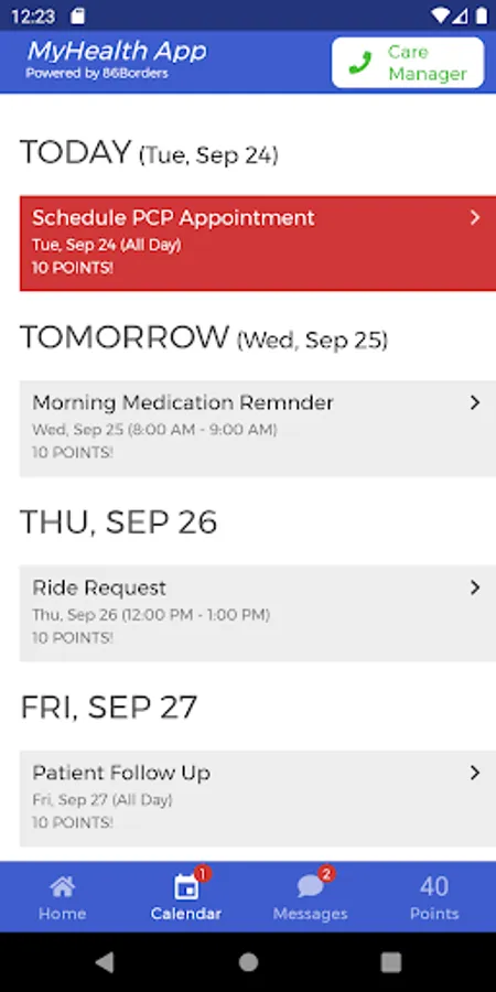 MyHealth is an application that brings your health information to your fingertips. Fill out necessary forms, schedule appointments, and contact your healthcare professional in one, easy to use app. Access important documents directly from the home page, check upcoming appointments and forms to fill out in your calendar, or send an image to your Care Manager though the app. You can even earn points for going to your scheduled doctor appointment, or completing assignments on time. Your health, your way, with MyHealth.