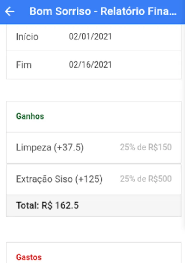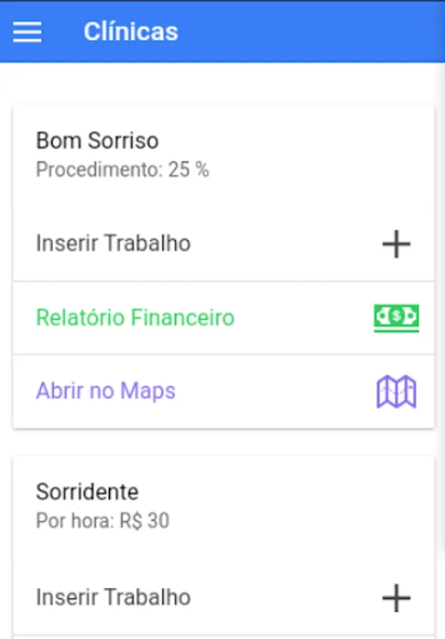 Autonomous Dentist is an application that allows the dentist to organize the clinics in which he works, saving the procedures and hours worked, generating a simple to use financial report.